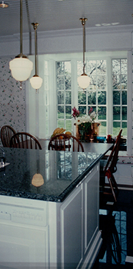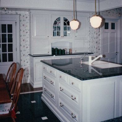 With the children grown and the nearby dining room in daily use, the mother jumped at the chance to rewrite this kitchen’s storyline by shifting its focus from eating to cooking. She set the stage by asking for a refined backdrop of classic white cabinets to replace dark countrified ones. Now, the kitchen no longer appears underdressed when compared to the rest of the house’s turned out garb.