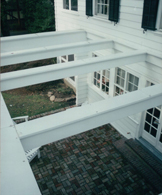 This kitchen was made bigger simply by pulling it out into the back yard like, if you will, a giant bread drawer. The resulting flat roof provided the perfect excuse for adding a terrace off of a second floor bedroom. Existing double hung wood windows were painstakingly removed and relocated to the extension where their distinctive trim was replicated exactly.