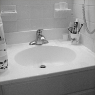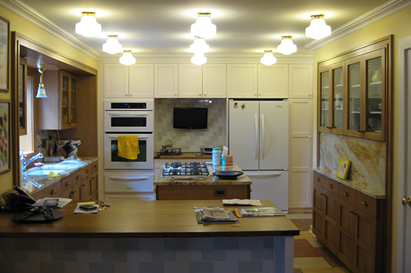 I was pleasantly surprised when, as stage three, the homeowners asked me to renovate the already renovated kitchen (see Sugar and Spice) along with a pair of ill-sized bathrooms. The allocation of a bathtub alcove to the kitchen allowed me to design better functioning and prettier rooms.